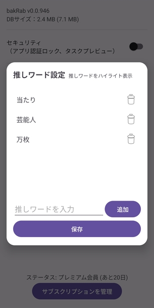 店舗ごとに「設定」「並び」「ガセ」など検索ワードを個別に設定可能